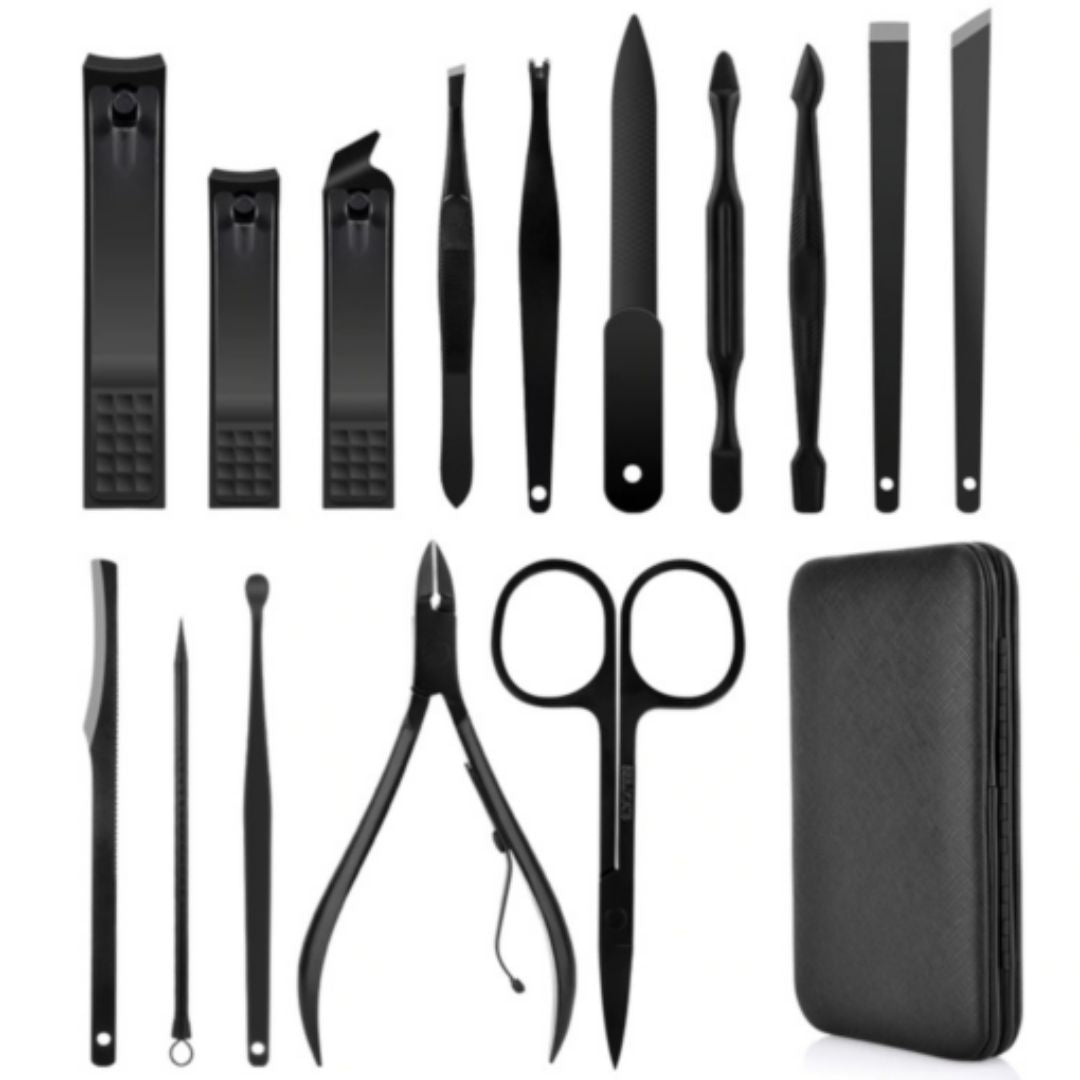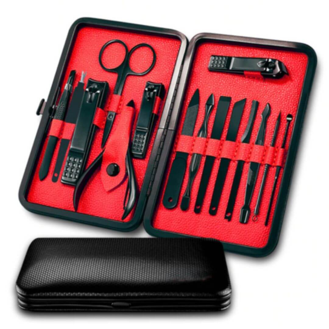 Ett praktiskt och mångsidigt nagelvårdskit med 15 delar för enkel och noggrann nagelvård. Innehåller olika verktyg för klippning, filning och formning av både fingernaglar och tånaglar. Perfekt för hemmabruk eller resan, tillverkat i slitstarkt material för långvarig användning.